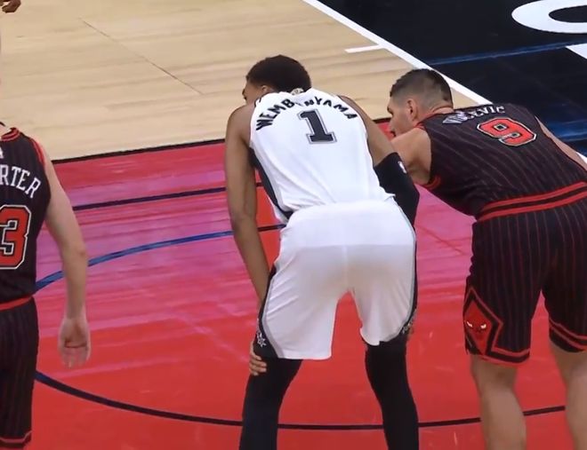 易边再战,武切维奇面对空篮离谱上偏,随后露出尴尬的神色。文班亚马假动作晃飞防守人之后直杀内线,起飞撞倒杰伦-史密斯,本场第二次被造进攻犯规。福克斯传球又出现失误,已经出现6次失误(全队14次),史密斯和特雷-琼斯连续跳投命中,赫尔特大空位接球三分再投进,三节打完,马刺89-98落后公牛9分。